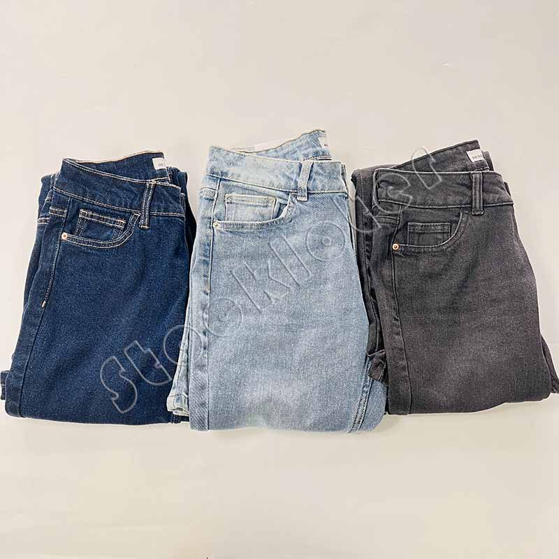 Lady's denim flared pants with three colors andseven sizes, 69,264 pcs in total.Contact us for handsome price.