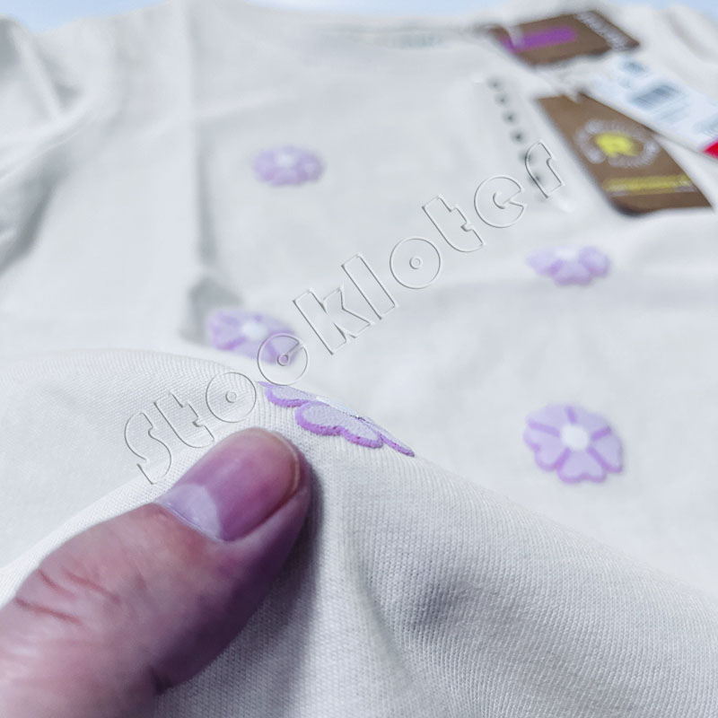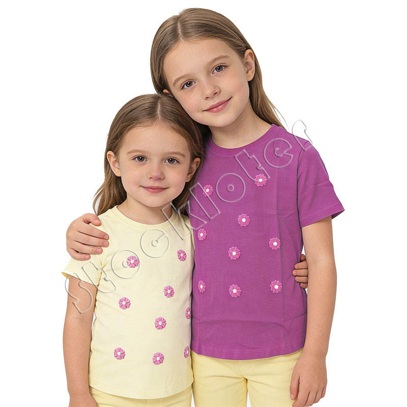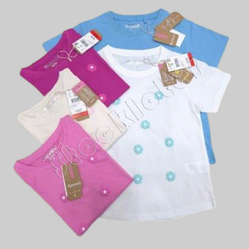 9,800 pcsLiquidated Stock Bangladesh Girls Round Neck Knitted Cotton T Shirts Tops with Flower Patches