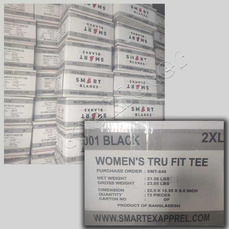 Женские майки, всего 51 012 шт., пять цветов, семь размеров, всего 218 коробок, 16,22 куб. м.