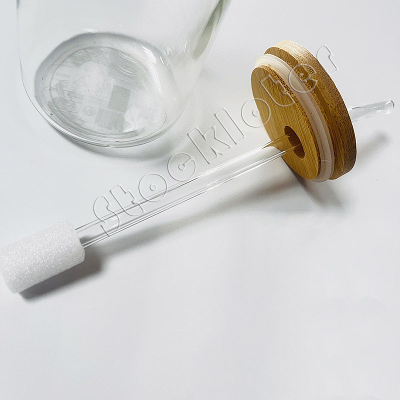 10,000 pcsLiquidation Stock 550ml Borosilicate Glass Bottles with Straw and Bamboo Lid